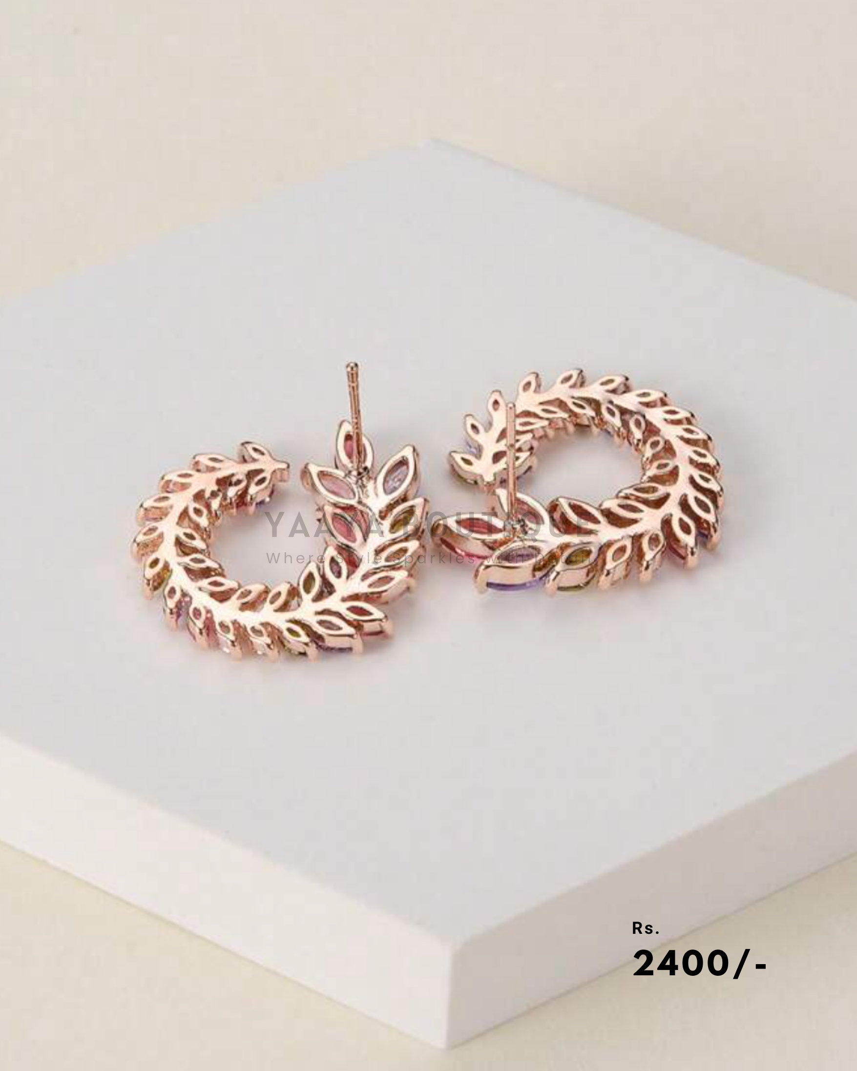 1pair Glamorous Cubic Zirconia Leaf Stud Earrings For Women For Gift Copper Jewelry