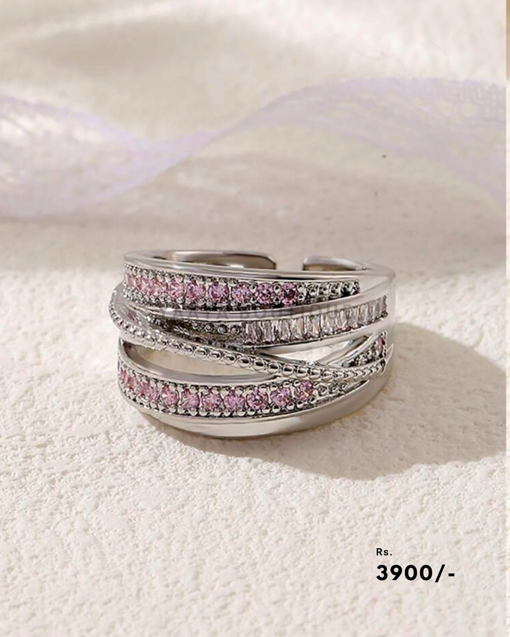Expertly crafted, the silver-plated finish offers a cool, contemporary shine, while the pink stone provides a soft, romantic contrast. The slim band ensures a comfortable fit for all-day wear, making it a go-to accessory for any outfit. Style it alone for a minimalist statement or mix it with other rings for a curated, layered look.